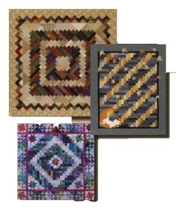 What is a “half log cabin”? The block starts with a dark square and then adds rectangles–one light, one dark, one light, one dark, etc., until the block is “big enough.” The square is half dark and half light, with the dark logs going one direction and the light logs going another. Blocks can be made with 1-1/2″, 2″, or 2-1/2″ strips, as desired. Rebecca Carter, innovative quilter and teacher, will lead us through a fun-filled class creating half log cabin blocks.